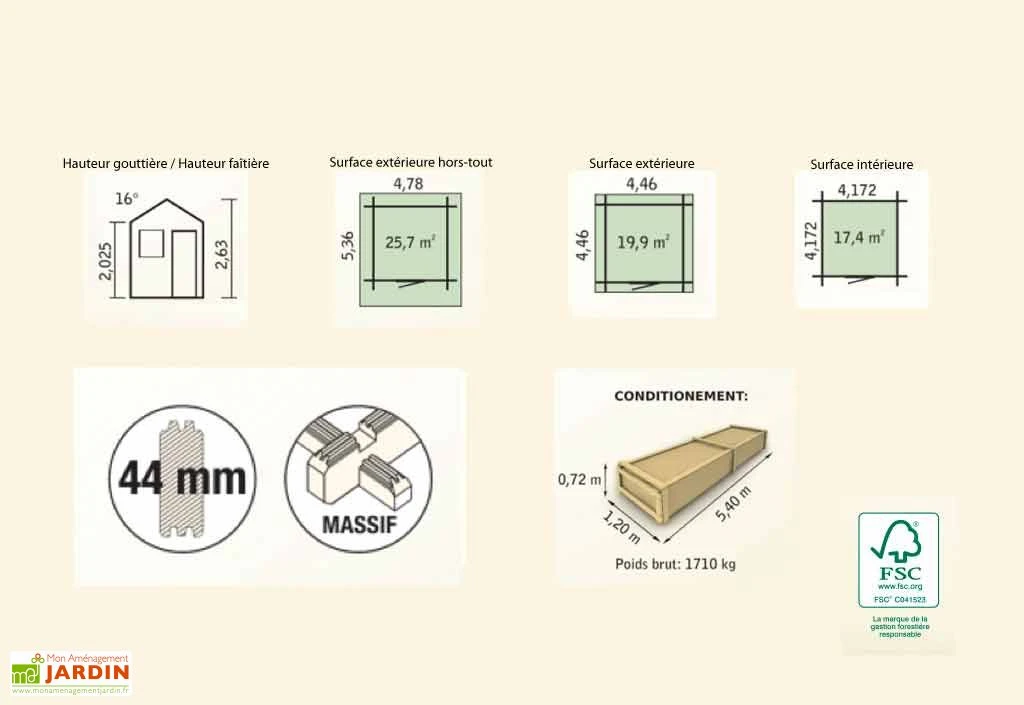 Votre chalet est livré en kit à monter soi-même et il est garanti 5 ans.