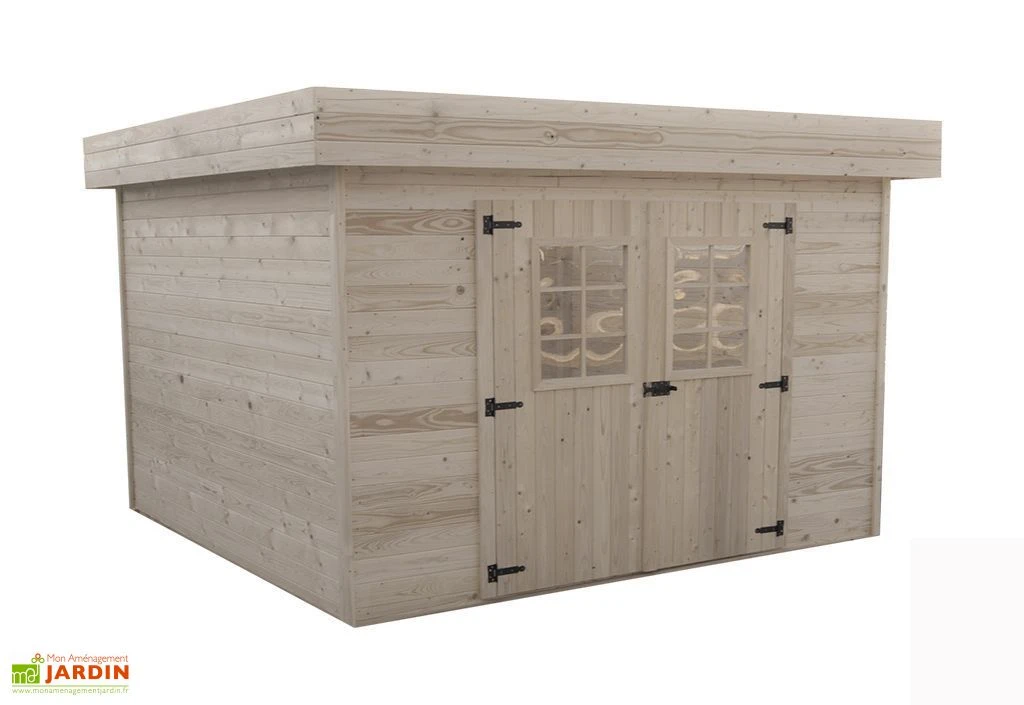 Cet abri de jardin offre un espace intérieur de 11,38 m², ce qui est idéal pour ranger des outils, du matériel de jardinage, des vélos ou tout autre équipement d’extérieur. Une fois monté, il occupera une surface de 14,75 m² dans votre jardin. Notez qu’il n’est cependant pas traité contre les menaces que représentent l’humidité, les insectes ou encore les champignons. Vous devrez donc appliquer une lasure et un traitement fongicide à l’intérieur et à l’extérieur de l’abri juste avant son installation.
