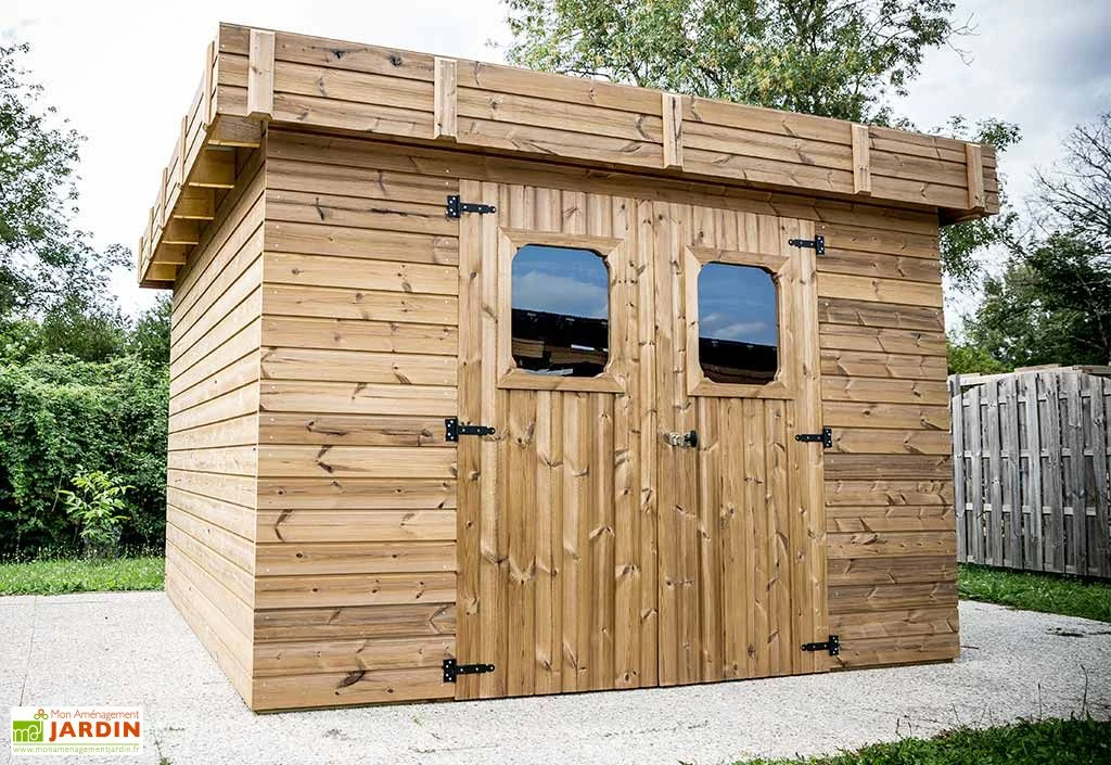 Cet abri de jardin est doté de parois de 19 mm d’épaisseur qui intègrent une double porte de 160 x 182 cm permettant d’accéder aisément à l’intérieur, même avec des objets relativement encombrants tels que des poubelles ou du petit mobilier de jardin, par exemple. Ces parois supportent également une toiture plate, légèrement inclinée pour assurer l’écoulement des eaux pluviales, et recouverte de plaques de tôle d’acier galvanisé, pour une étanchéité optimale.