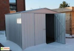 Les parois extérieures de 0,9 mm d’épaisseur de cet abri de jardin en métal intègrent une porte vitrée verrouillable de 87 x 198 cm et soutiennent une toiture plate (inclinaison du toit : 2°) faite de panneaux sandwich isolés de 4 cm d’épaisseur. Cette dernière pourra supporter une charge de neige de 220 kg/m² et est équipée d’une gouttière avec descente chargée d’assurer l’évacuation efficace des eaux pluviales ou de la neige fondue.