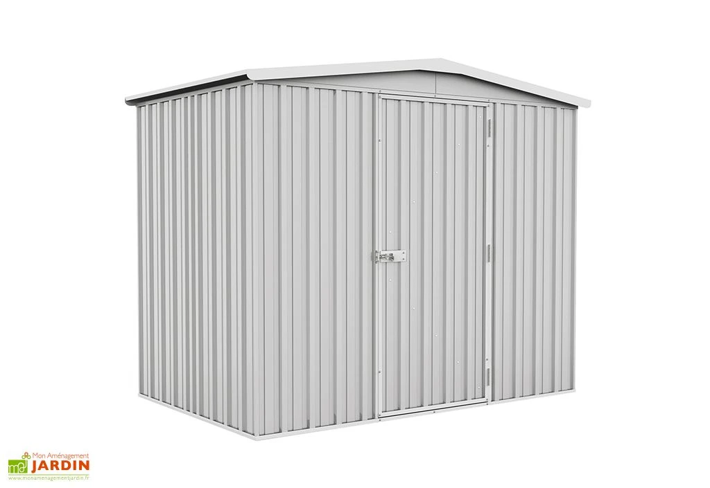 Votre matériel sera bien en sécurité puisque l’abri en métal est équipé d’une porte avec un loquet de verrouillage. Il dispose d’un toit en double pente afin de drainer plus facilement l’eau de pluie, et la remise de jardin possède aussi une grande résistance au vent jusque 147 km/h grâce à ses panneaux de 0,35 mm d’épaisseur.
