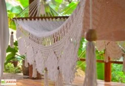 La balancelle mesure 160 cm de longueur, 123 cm de profondeur et 180 cm de hauteur. Elle est dotée d’une assise de 115 x 56 cm, située à 39 cm de hauteur qui pourra supporter jusqu’à 300 kg. Sa longueur est idéale pour 2 personnes installées confortablement. Un coussin d’assise et deux coussins de dossier en polyester sont inclus. En plus d’être confortables ils ne craignent pas les UV, l’humidité ni la saleté.