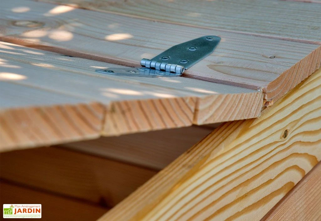 Si l’espacement entre les lattes des parois permet d’assurer la bonne aération du compost, le couvercle se chargera pour sa part d’assurer la bonne protection du contenu du bac en cas d’averse. Son design en « portefeuille » lui permettra de plus d’être totalement rabattu afin de simplifier le dépôt des déchets. La face avant, divisible en deux parties indépendantes, pourra également être ouverte sur le dessus afin que le tas de compost soit aisément accessible, même avec une fourche ou une pelle.