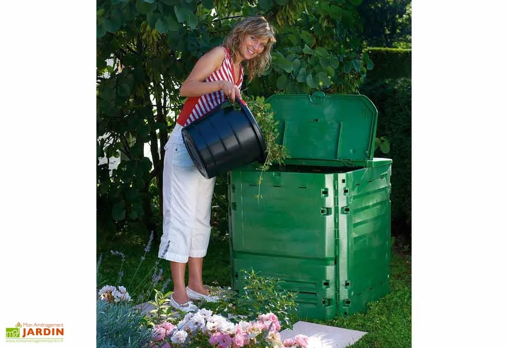 Le bac à compost est livré en kit à monter. Il est équipé d’un couvercle, que l’on peut ouvrir en deux parties et de deux portes pour sortir le compost facilement. La décomposition se fait simplement et rapidement dans ce bac grâce à une aération efficace. Il est recommandé de l’installer sur une surface plane en contact direct avec la terre pour faciliter le passage de la biomasse animale.