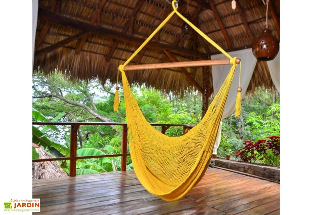 La chaise suspendue Diriamba de chez Hamac del Sol est idéale pour profiter d’un moment de détente, en intérieur comme en extérieur. Elle est parfaite pour les petits espaces et pourra être aisément suspendue à votre plafond ou autre structure en hauteur grâce au kit de fixation disponible dans l’onglet « Accessoires ».