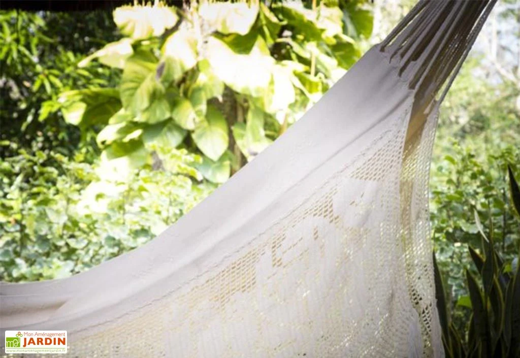 Tissée sur un métier à tissé vertical de façon artisanale, la toile de ce hamac est conçue en MiraTex, un tissu acrylique extra fin et très solide qui résistera aux intempéries et aux rayons UV. Son tissage dense accentue son confort et vous assurera un bon maintien. Notez que pour une installation dans les meilleures conditions, ce hamac de jardin devra être suspendu à l’aide du kit de fixation ou des cordes disponible dans l’onglet « Accessoires ».