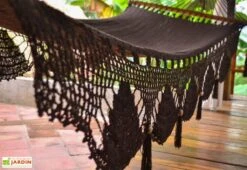 La toile de ce hamac suspendu est tissée à la main. Elle est intégralement conçue en coton et mesure 100 cm de large sur 237 cm de long (longueur totale : 361 cm). Très robuste, elle pourra supporter un poids maximal de 170 kg et vous accompagnera durant de nombreuses années. Elle pourra également être facilement lavée si besoin, afin de conserver son éclat. Notez enfin qu’un kit de fixation, indispensable à l’installation du hamac, vous est proposé dans l’onglet « Accessoires ».