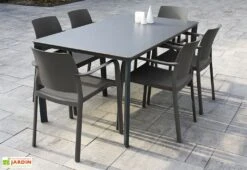 Salon De Jardin : 1 Table Aluminium 200 X 90 Cm Anthracite + 8 Fauteuils – Fado