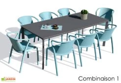 Salon De Jardin : 1 Table Aluminium 200 X 90 Cm + 8 Fauteuils – Dock