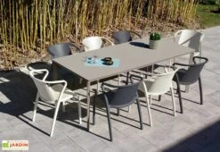 Salon De Jardin : 1 Table Aluminium 200 X 90 Cm Taupe + 8 Fauteuils – Fado