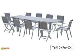 La table basse du salon de jardin mesure 110 cm de longueur, 60 cm de largeur et 40 cm de hauteur. Elle est entièrement en aluminium et dispose d’une plateau de 2,5 mm.